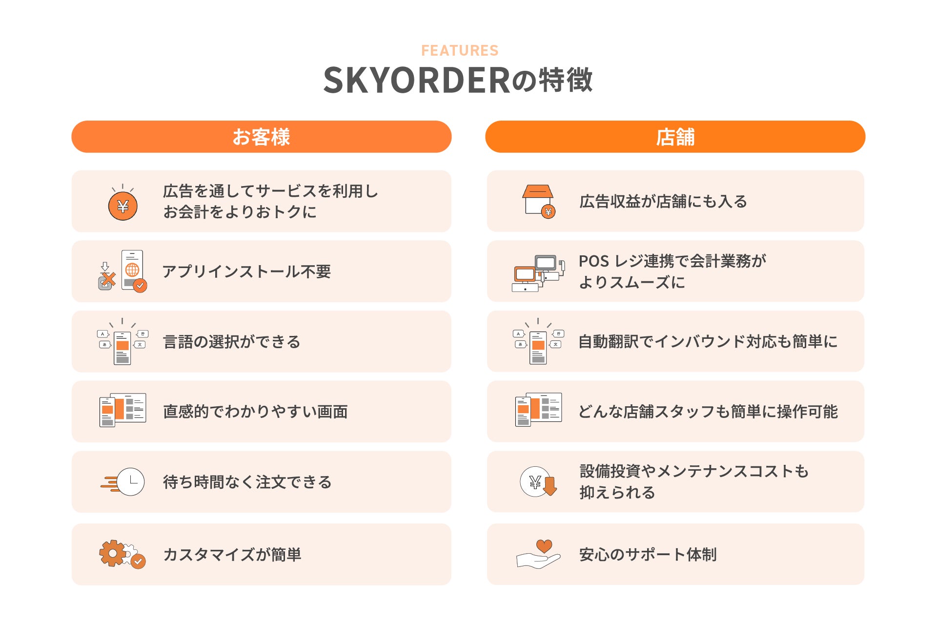 『SKYORDER』は、飲食店にオペレーションの効率化と新たな収益源を提供し、さらに顧客体験を向上させる独自のセルフオーダーシステムです。